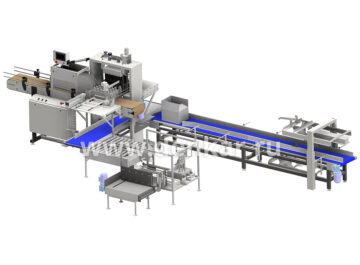 Данная установка оснащена функцией автоматической загрузки продукции внутрь сформированной коробки.